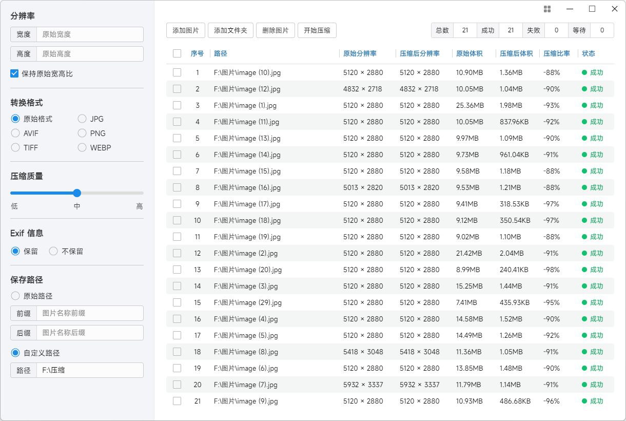 ▎软件特点: – 拥有极快的压缩速度 – 压缩单张最大 10GB 图片 – 支持 6 种图片格式 – 支持深、浅色界面主题模式 – 支持预览原始图片 – 多种方式添加图片 – 添加文件夹,自动解析文件夹 – 实时显示压缩进度 – 本地执行压缩,保证隐私安全