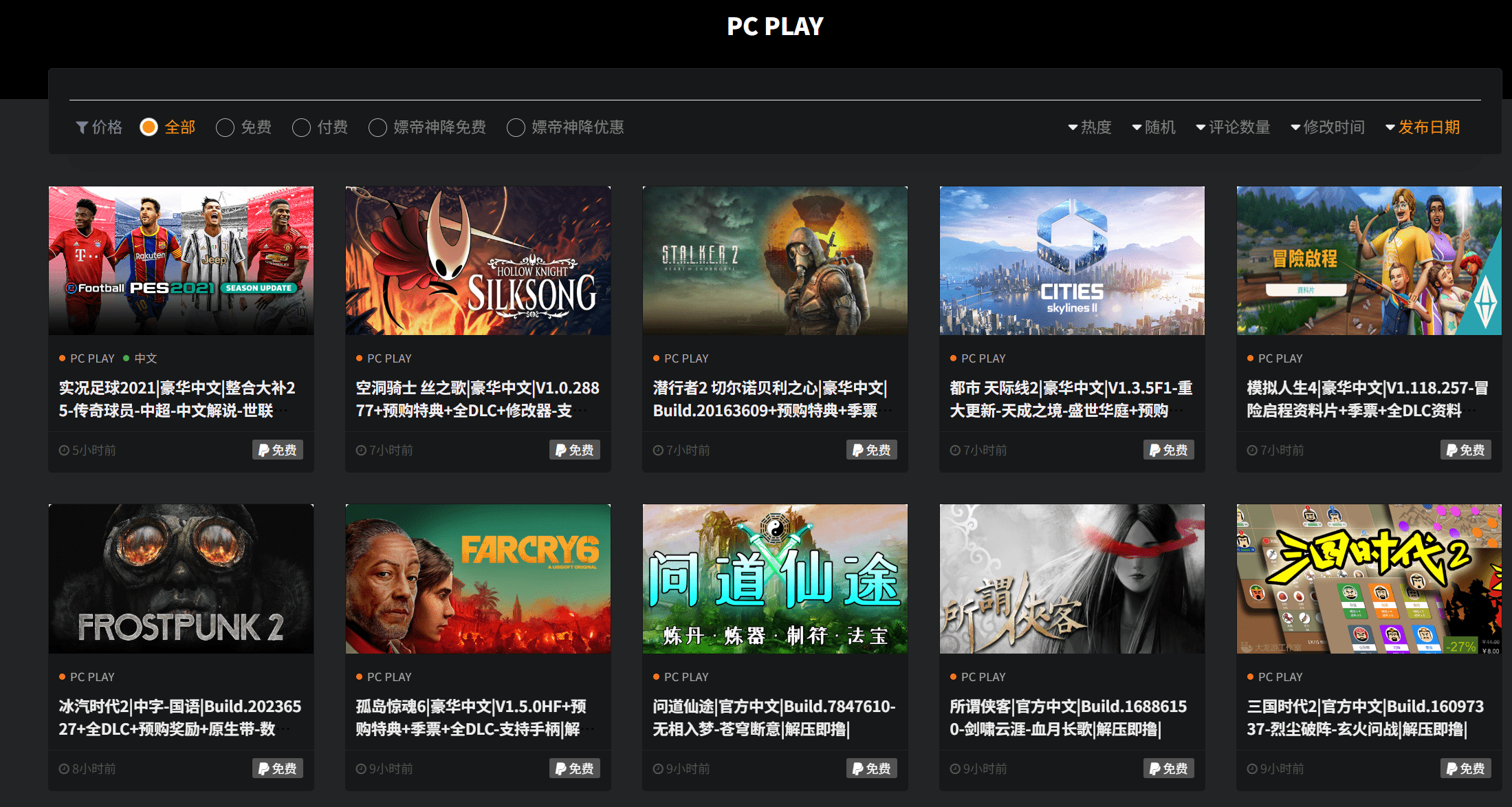 Wavse 一个 大型游戏下载 站,提供 直链下载 ,包括 艾尔登法环 、GTA5、 博德之门 3 、只狼、使命召唤 、城市天际线、 文明 6 等,目前共有近 600 个游戏,无需注册 ,免费下载。 亲测能玩,这个是真牛逼,直链下载我是万万没想到的,这服务器得多大流量?