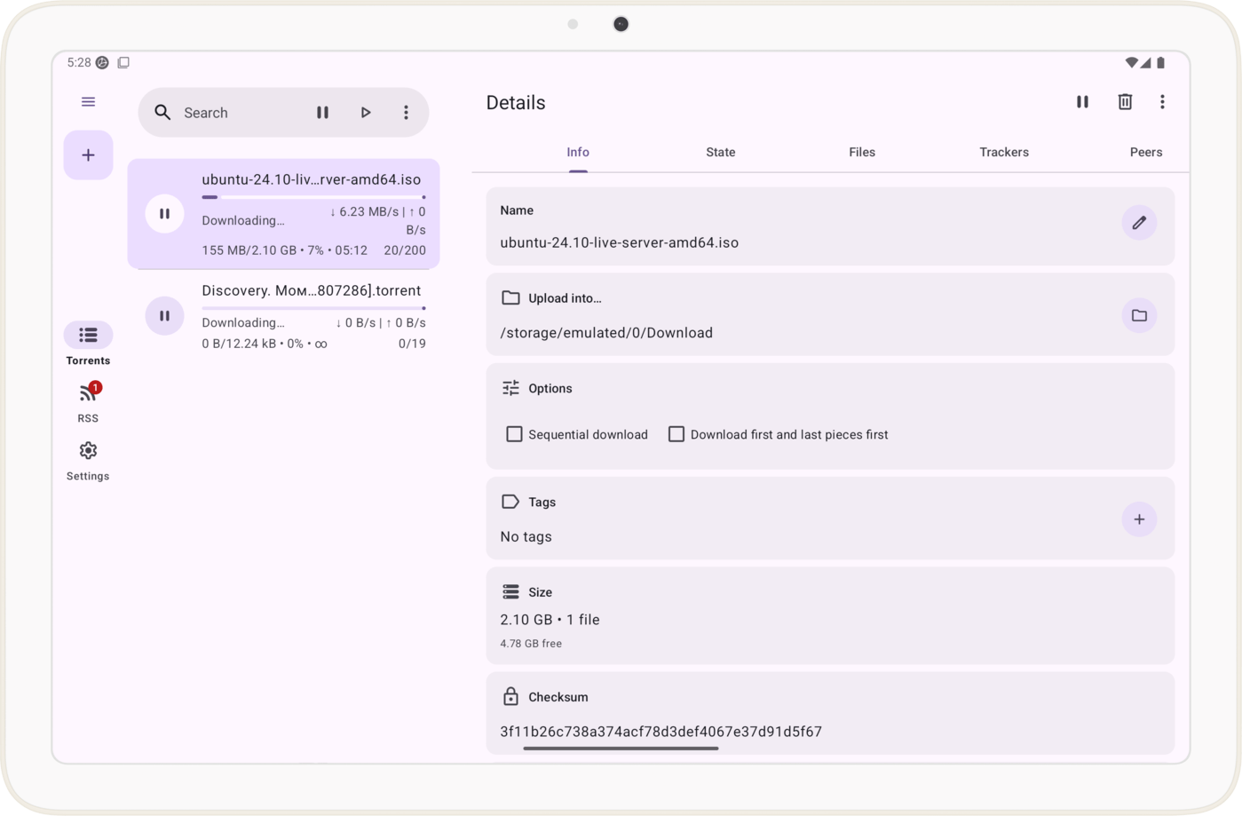 - 无广告无付费 :全程无开屏广告、弹窗广告,也没有“会员解锁高速下载”的付费项,所有功能(包括流式播放、RSS 管理)均免费开放。对比某工具“不付费则限速至 100KB/s”的做法,LibreTorrent 的下载速度仅受网络环境影响,无人工限制;